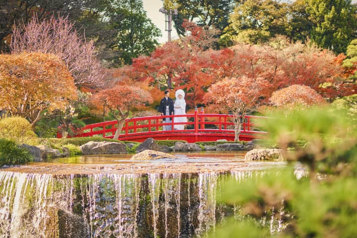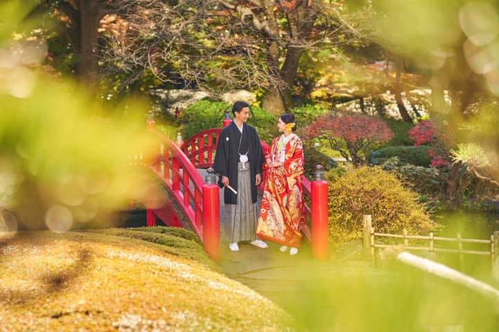 気候が比較的穏やかで晴れる日が多い秋は、前撮りでも人気のシーズン。日本庭園の紅葉は、11月下旬から12月初旬にかけて見頃を迎えます。秋の風情漂う中、ご家族や大切な方々と過ごす時間は鮮やかに心に刻まれることでしょう。